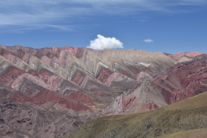 In northern Argentina there is a beautiful mountain with stripes of different coloured rock called Hornocal. The viewpoint was even higher than the pass from Chile to Argentina.
